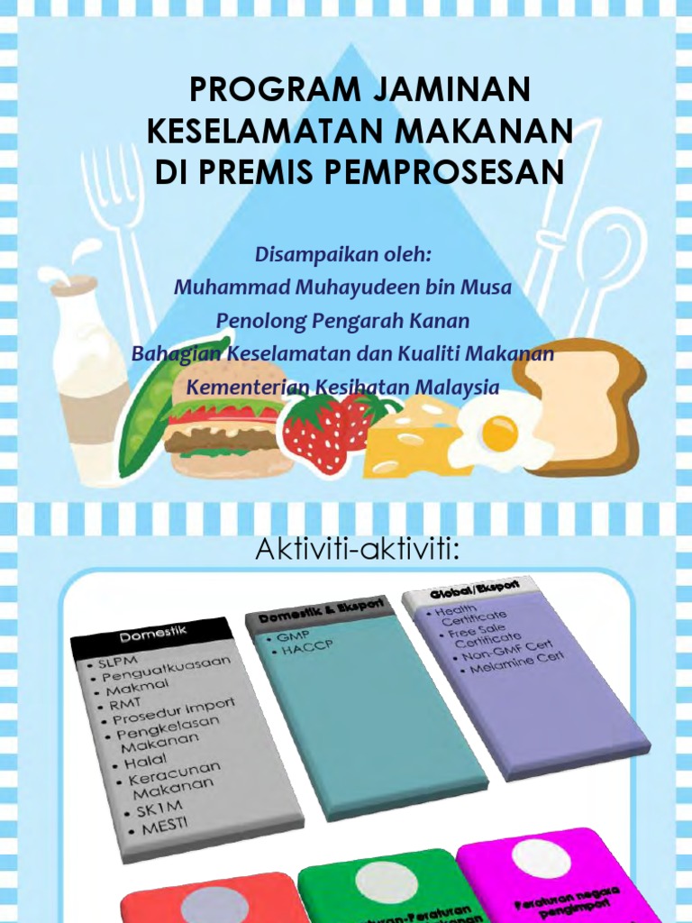 Bahagian Keselamatan Kualiti Makanan. Dan apakah kepentingannya dalam sektor industri makanan negaraJom saksi. Memahami keperluan untuk kebersihan dan keselamatan makanan seperti yang diperuntukkan dalam Program Jaminan Keselamatan Makanan PJKM dibawah bidang kuasa Kementerian Kesihatan Malaysia.