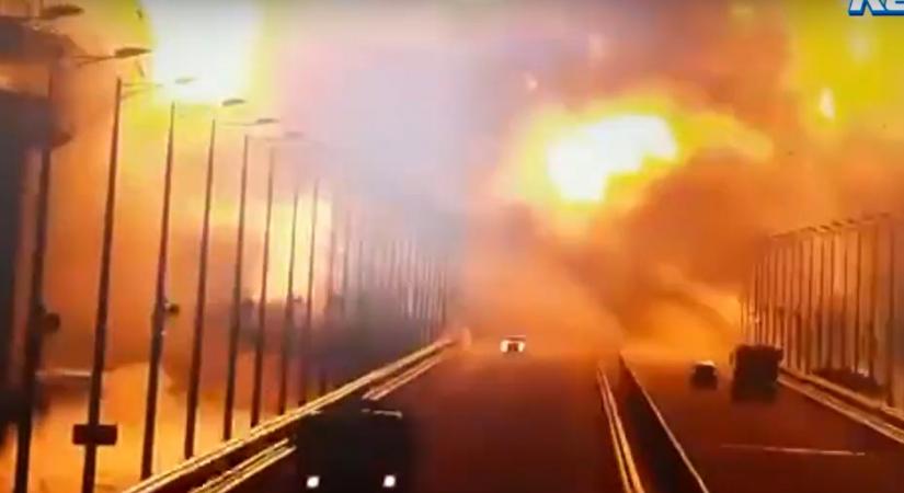 A közösségi médiában terjedő felvételek szerint egy vonat két vagonja lángol. Hatalmas robbanás történt a krími hídon eszkalálódhat a háború. Amint arról beszámoltunk az Oroszországot Krím-félszigettel összekötő hídon robbanás történt ennek következtében kigyulladt egy üzemanyagot szállító tehervonat illetve a híd is jelentős.